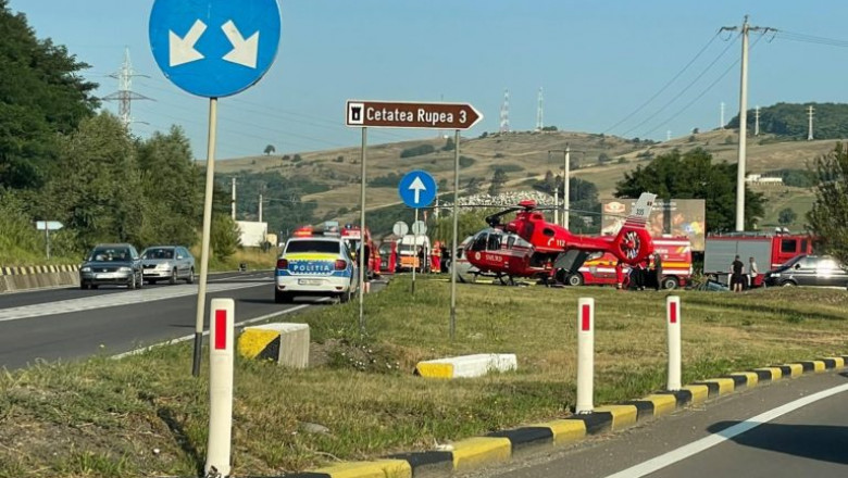 Patru persoane au fost rănite sâmbătă, una dintre ele grav, în urma unui accident pe DN 13, între Brașov și Sighișoara, în localitatea Rupea, produs de o șoferiță care conducea o mașină cu volan pe dreapta. A fost solicitată intervenția unui elicopter SMURD.