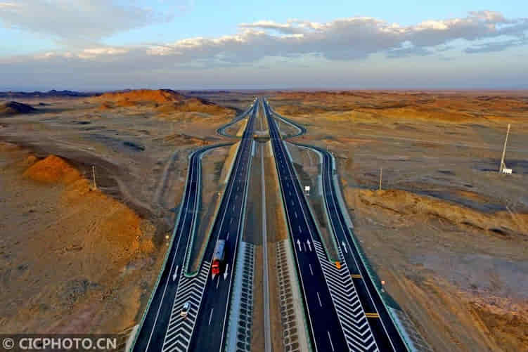 Autostrada Beijing – Urumqi a fost recent finalizată şi uneşte capitala regiunii autonome Xinjiang Uygur din nord-vestul Chinei prin deşertul Gobi şi peste munţi.