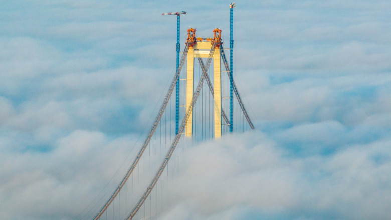 Fotografiile au fost realizate din dronă în zona podului aflat în construcție la Brăila.