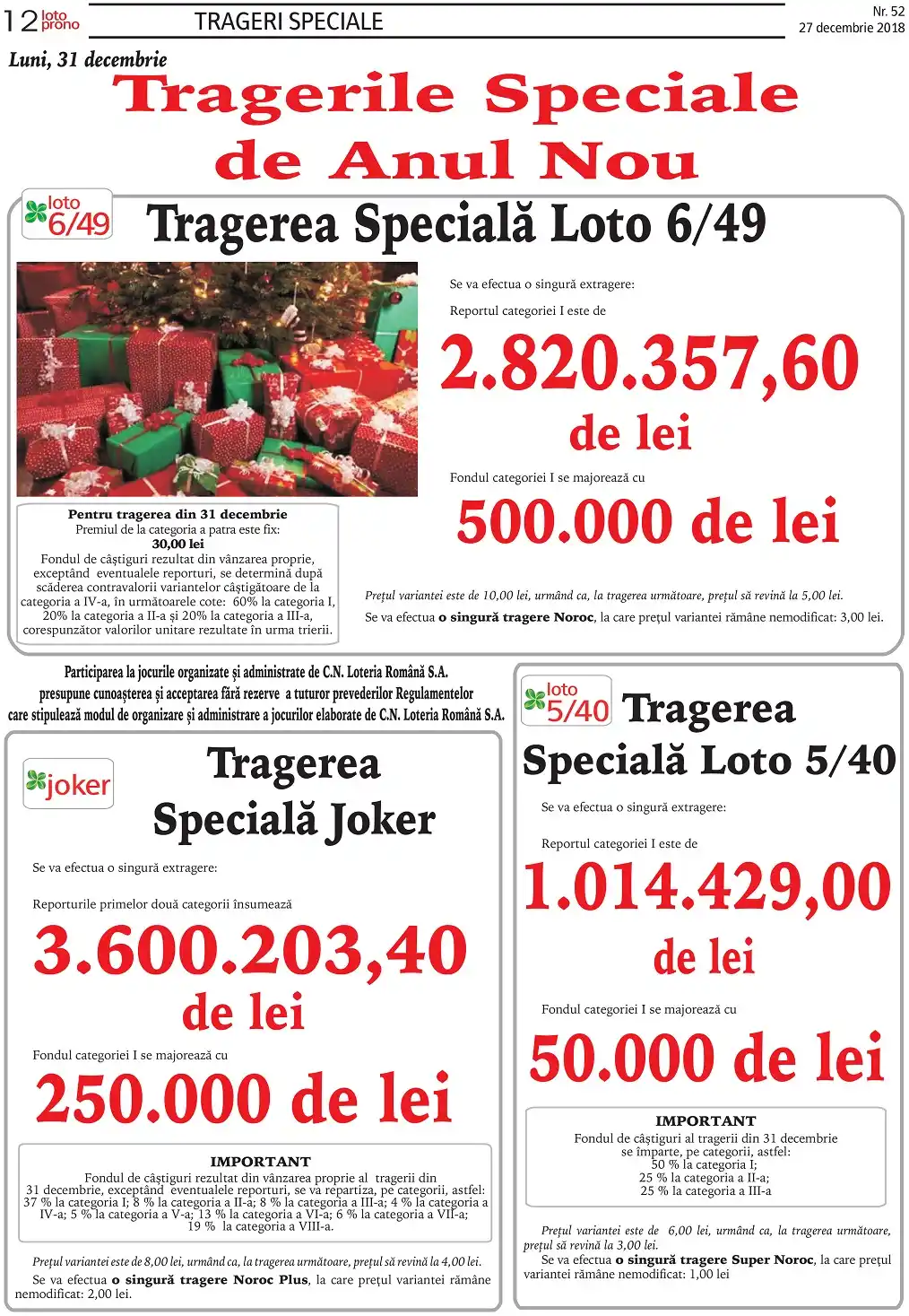 Loteria Română este în centrul unui scandal uriaş după extragerea de Anul Nou. Variantele au costat dublu, iar jucătorii susţin că în agenţii li s-a spus că este vorba de o extragere dublă, adică biletele ar urma să fie valabile pentru două extrageri, doar că pe 31 decembrie a avut loc o singură extragere.