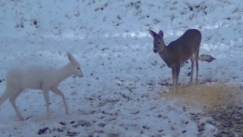 O căprioară complet albă și-a făcut apariția recent la unul din punctele de hrănire monitorizate, din Parcului Natural Bucegi. Apariția este surprinzătoare chiar și pentru reprezentanții Romsilva care spun că o căprioară albă este extrem de rară în fauna din România.