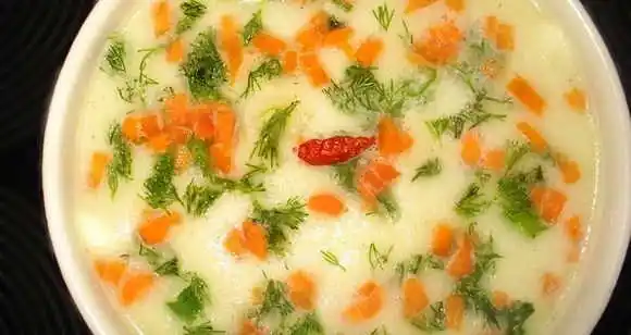 Se taie cartofii si telina in cubulete mici, se pun intr-o cratita cu margarina topita. Dupa ce s-au aurit, se toarna apa calda atit cit sa le acopere si se lasa sa fiarba inabusit citeva clocote. Se mai adauga apa fiarta in care s-a batut smintina, sarea, piperul si felii subtiri de brinza. Se presara patrunjel tocat si se serveste foarte feirbinte.