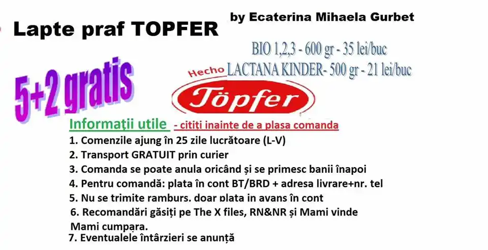 Am comandat la doamna Borache Luiza ( colaboratoarea doamnei Gurbet) : pampers , lapte praf, servetele in perioada 16 ianuarie 2017 – 13 aprilie 2017 in valoare de 2205 ron. Aceste oferte erau ale doamnei Gurbet Ecaterina – Mihaela.