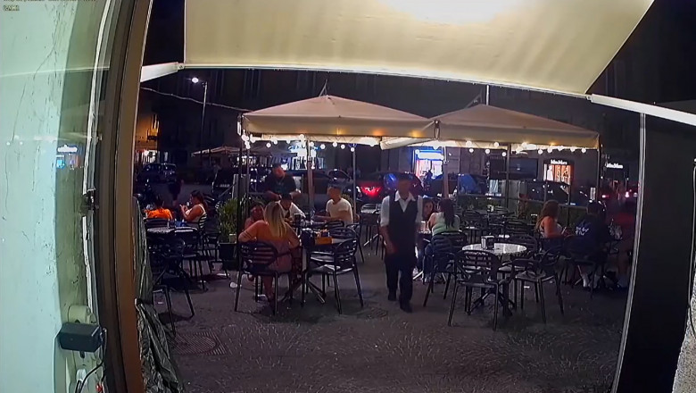 După ce chelnerul aduce meniul turiștilor și se întoarce în bar, tânărul este filmat cum intră pe terasă, scoate o armă și o pune la tâmpla turistului în timp ce îi smulge ceasul de la încheietură. Incidentul s-a încheiat în câteva secunde, iar turiștii se uită șocați în timp ce păgubitul îi explică chelnerului ce i s-a întâmplat.